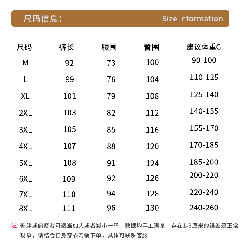 尺码: 4XL 3XL 2XL XL L M 8XL 7XL 6XL 5XL