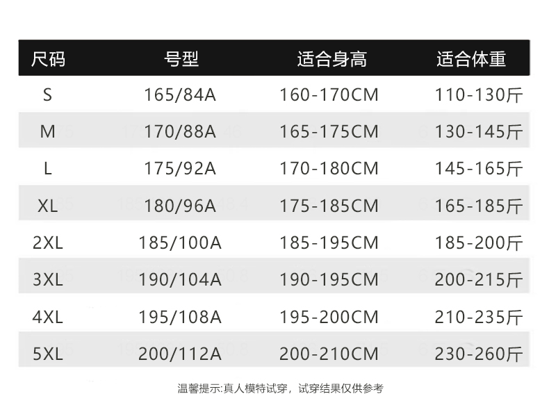 尺码: 5XL 4XL 3XL 2XL XL L M S