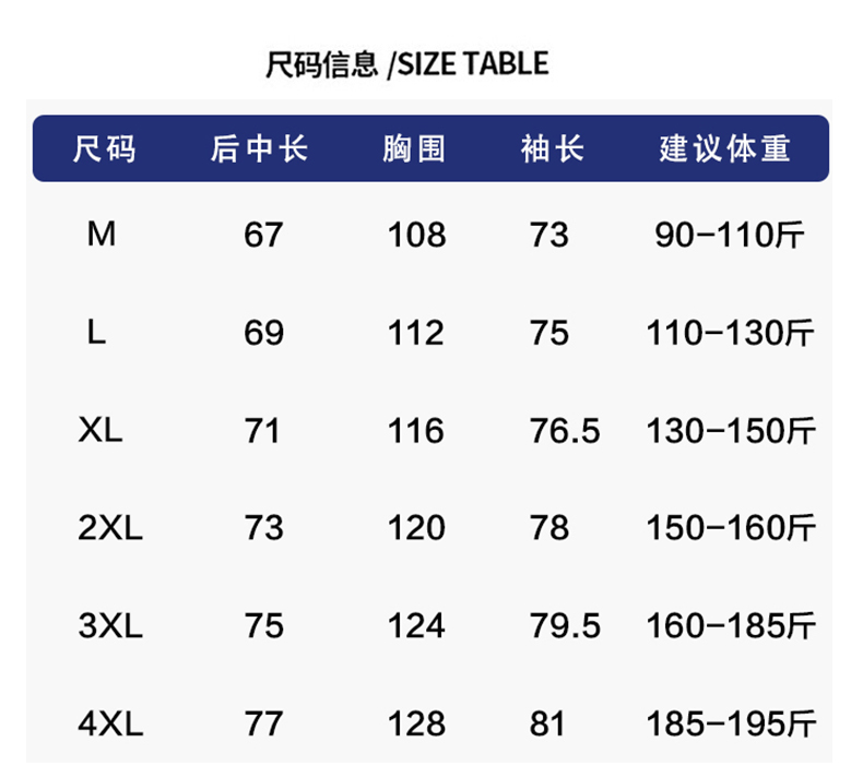 尺码: 4XL 3XL 2XL XL L M