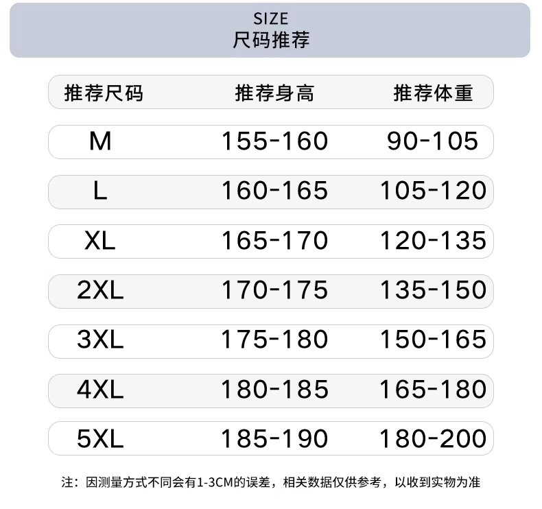 尺码: 5XL 4XL 3XL 2XL XL L M