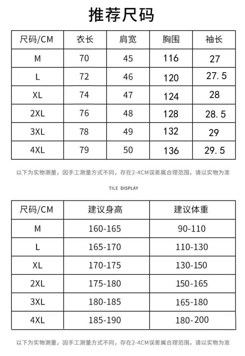 尺码: 4XL 3XL 2XL XL L M