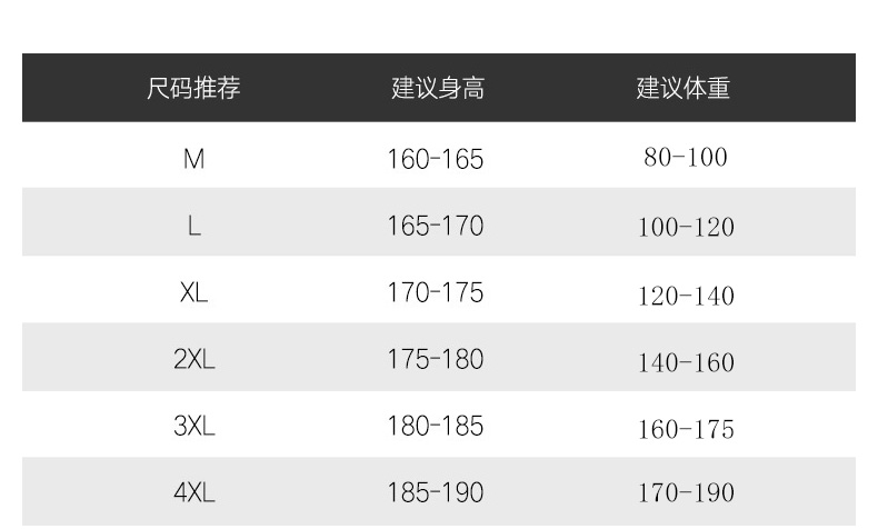 尺码: 4XL 3XL 2XL XL L M